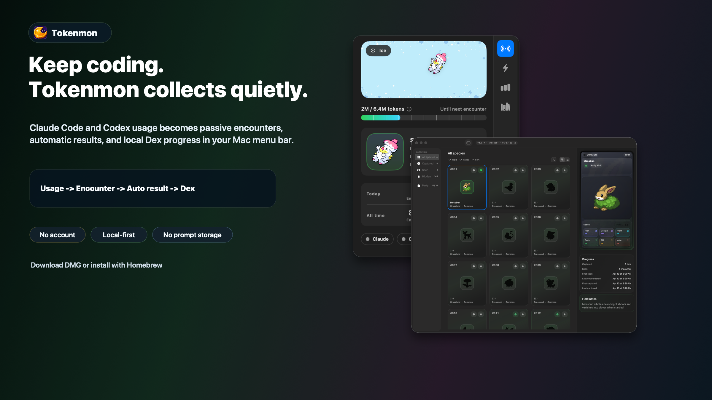 GitHub Releases および Homebrew が現在のパブリック パスです。 Tokenmon には macOS Sequoia 以降が必要です。